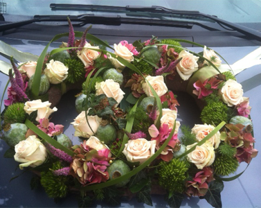 Die Herzform ist bei der Hochzeit sehr beliebt. Dabei werden die Blumen sehr kurz gesteckt, damit die Form besser zur Geltung kommt. Egal für welche Form Sie sich entscheiden, sollte vor der Bestellung der Dekoration feststehen, welche Art von Befestigung des Blumenschmucks am Fahrzeug erlaubt ist (Saugnapf oder Magnet).
